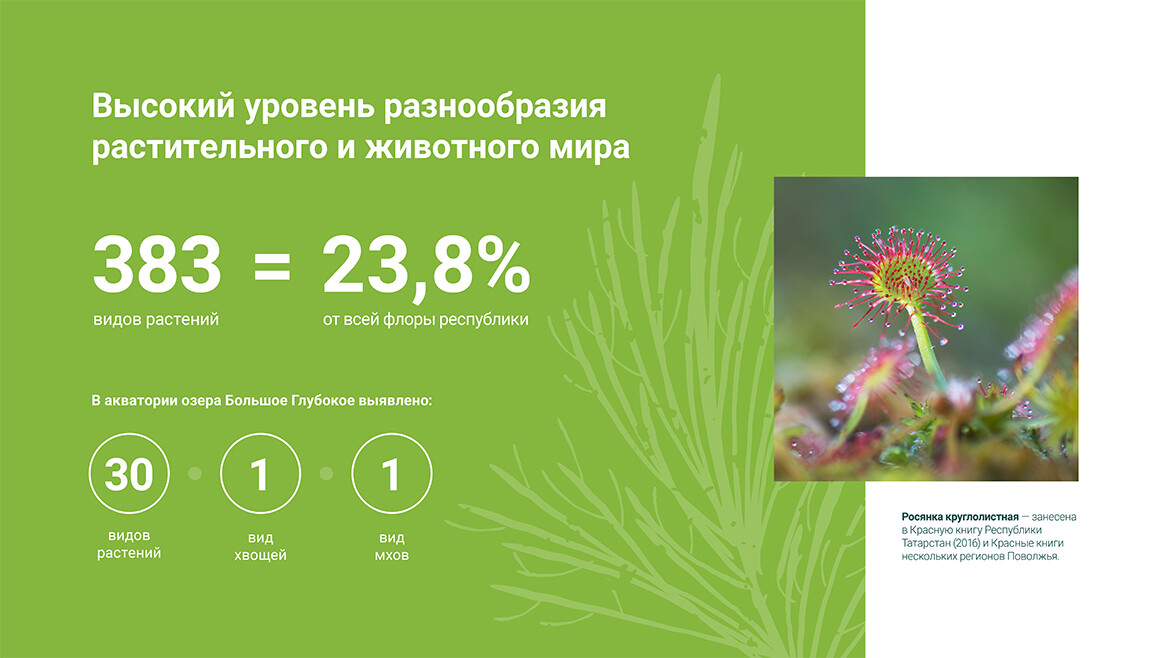 Около 30 видов редких растений, в том числе краснокнижную росянку круглолистную, обнаружили ученые Академии наук Татарстана в ходе исследования биоразнообразия лесопарка «Лебяжье». Об итогах проведенной работы рассказал замдиректора по научной работе Института проблем экологии и недропользования Академии наук РТ Дмитрий Иванов.