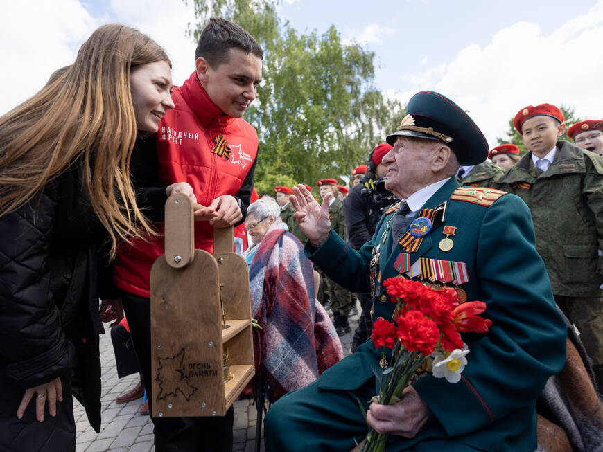 На встречу Алексей Николаевич пришел в сопровождении своей семьи. Его парадный китель украсило множество наград – орден Красной Звезды, Отечественной войны первой степени, юбилейные медали, а том числе «80 лет Победы». Ее фронтовику год назад в Казанском Кремле также лично вручал Рустам Минниханов.