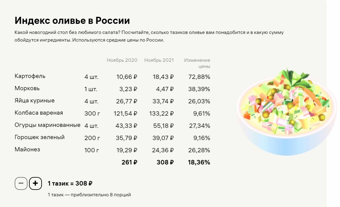 Индекс оливье рассчитан по данным Росстата за ноябрь.