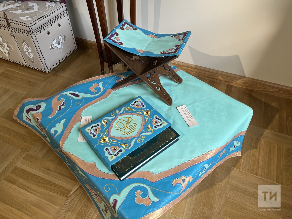 Совместный проект творческих училищ стал презентацией синтеза искусств: на стенах - живописные и графические работы, а по периметру - экспонаты из художественно обработанной кожи. Гости увидели декоративные панно, сундуки для приданого, ансамбль одежды для никаха, набор для намаза, аксессуары для одежды, стулья и банкетки.