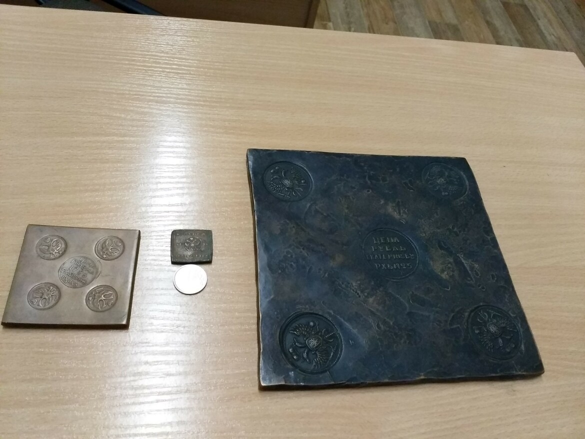 «Это было принято до революции (чеканка монет-новоделов. – Ред.). Иногда даже на монетных дворах подлинными штемпелями выпускали монеты для коллекционеров – никто не предполагал, что с этой монетой кто-то пойдет на базар и будет что-то покупать. Но наша плита изготовлена и не подлинными штемпелями. Она была приобретена музеем в 1930-е годы у частного лица Василия Ивановича Михайлова, который продал музею большую коллекцию разных монет», – рассказала Альфира Сингатуллина.