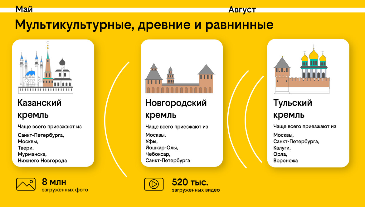 Кремли в России — одни из самых древних построек, центры старых городов, отражающие многовековую историю и особенности нашей страны. Каждый из них по-своему уникален. Оказавшись в их стенах, всегда хочется поделиться своими впечатлениями с близкими: отправить фото, видео, устроить трансляцию в социальных сетях, позвонить родным по видеосвязи. И помогает в этом мобильный интернет. Как оказалось, месяцы, в которые туристы чаще всего рассказывают о своих эмоциях через интернет, отличаются для разных кремлей. В преддверии туристического сезона аналитики билайна определили, в какое время года посетители семи кремлей, расположенных в разных регионах страны, больше всего делились впечатлениями в сети.
