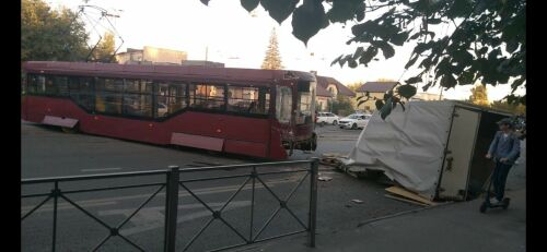 В Казани трамвай на скорости снес «ГАЗель» и слетел с путей, двое пострадали