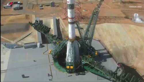 Ракета «Союз 2.1а» была установлена на стартовой площадке в Байконуре