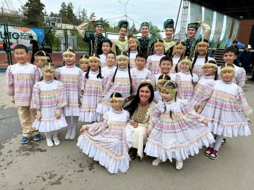 Лилия Галимова сфотографировалась с юными якутами на Сабантуе
