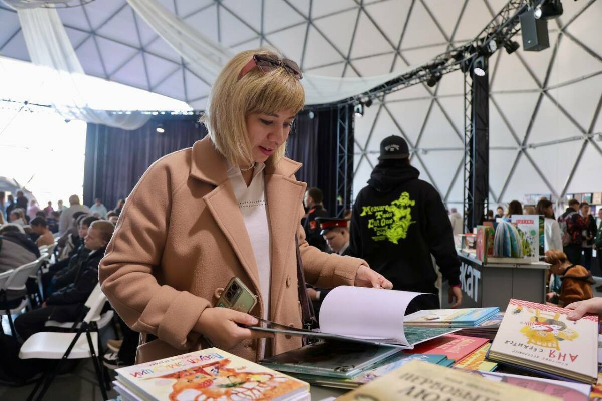 На этой площадке каждый может не только стать слушателем лекций и участником мастер-классов, но и приобрести книги напрямую от ведущих издательств страны, пообщаться с их авторами. Например, глава района приобрел книги для детей.