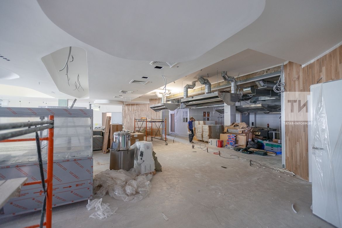 «Также у нас есть две столовые на двух разных этажах. Каждый обеденный зал предназначен для 250 человек, — сказал он. — В актовом зале на данный момент ведутся работы по устройству полов, планируется паркет. Заканчиваем укладывать плитку, будем подготавливать под установку кресел».