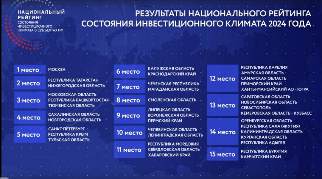 При составлении национального рейтинга оцениваются следующие факторы: предоставление земельных участков в аренду без проведения торгов, эффективность механизма государственно-частного партнерства, региональный совет по улучшению инвестиционного климата, работа агентства по привлечению инвестиций и работе с инвесторами, наличие интернет-портала об инвестиционной деятельности.