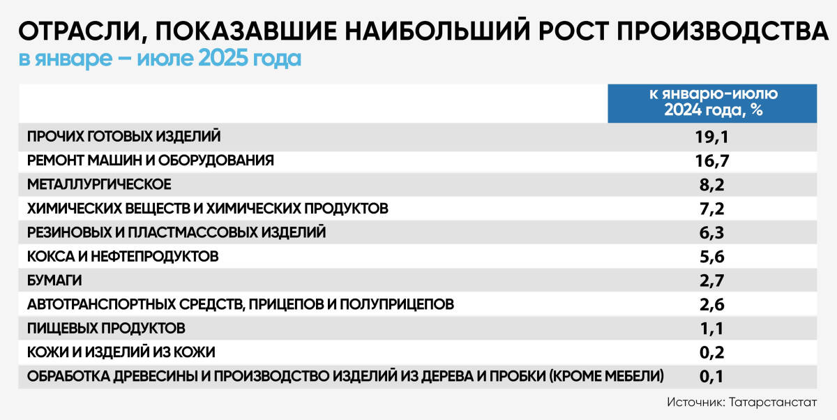 Промышленность Татарстана за семь месяцев 2025 года выросла на 11,2%, ключевой вклад в это внесла обработка, прибавившая на рекордные 20,5%. При этом сохраняется перекос: многие системообразующие отрасли остаются в минусе, а драйверами выступают лишь отдельные сегменты. Подробнее – в обзоре аналитического центра «Татар-информа».