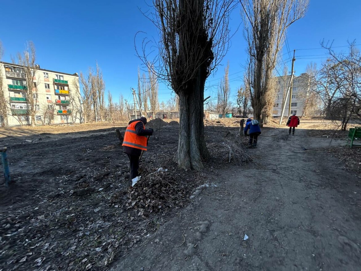 В преддверии весны мини-субботники проводятся во всех микрорайонах Лисичанска – коммунальщики убирают опавшие листья, сухостой и накопившийся за зиму мусор.
