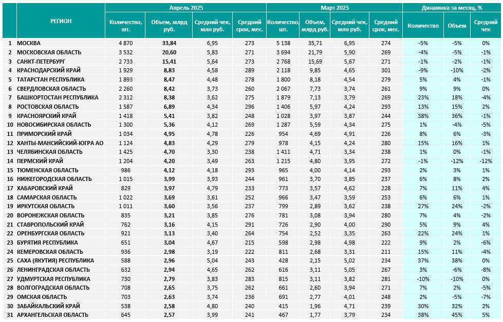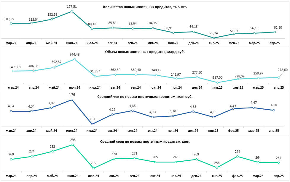 По России в целом наблюдается сокращение среднего срока ипотечного кредитования. В апреле 2025 года он составил 264 месяца (22 года), что на 15 месяцев меньше, чем год назад.