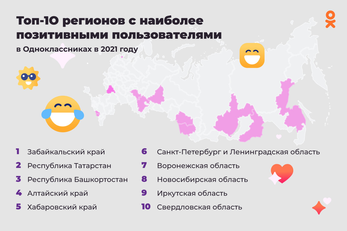 Республика Татарстан вошла в топ-10 регионов России с самыми доброжелательными жителями. Это следует из подготовленного социальной сетью «Одноклассники» рейтинга, представленного в виде «Карты эмоций».