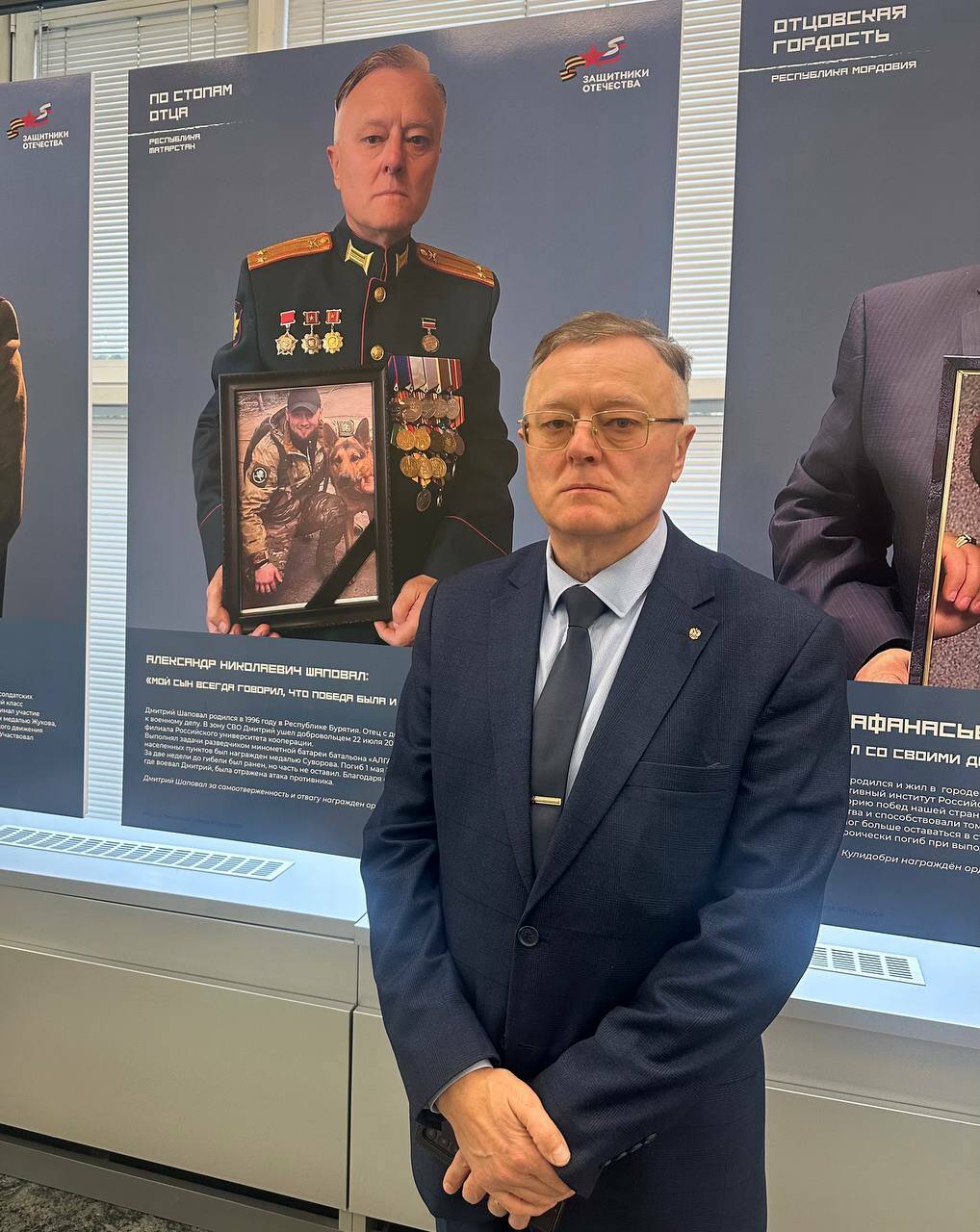 На фотографии Александр Шаповал держит снимок младшего сына Дмитрия. Тот отправился в зону СВО добровольцем 22 июля 2023 года, был разведчиком минометной батареи батальона «Алга». Татарстанец отмечен медалью Суворова за освобождение населенных пунктов.