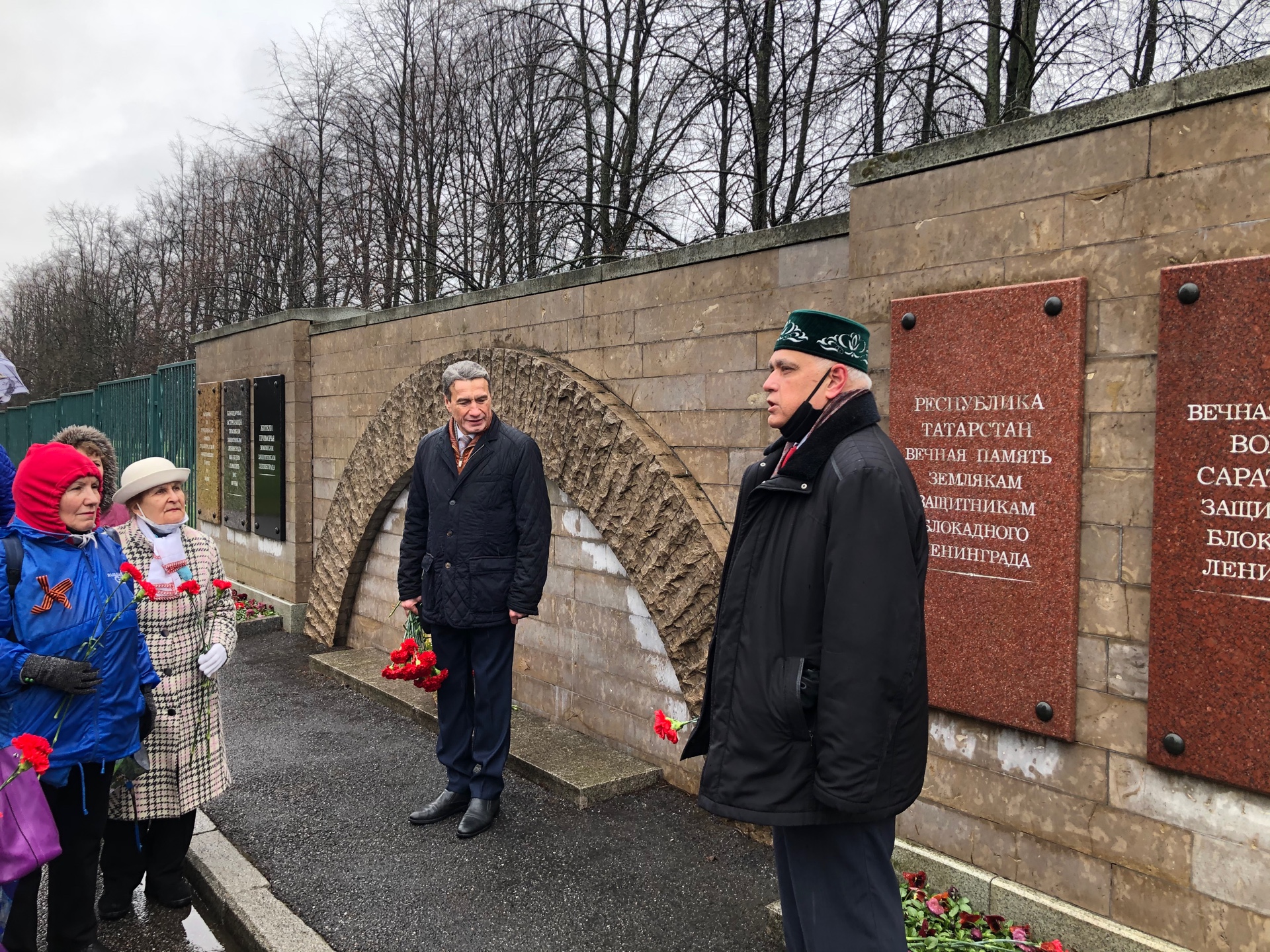 Также они возложили цветы к мемориальной плите, установленной республикой на Пискаревском кладбище в память об уроженцах Татарстана, погибших в боях за Ленинград. В 2001 году здесь была создана Аллея Памяти, где появилась мемориальная доска с надписью «Республика Татарстан. Вечная память землякам — защитникам блокадного Ленинграда»