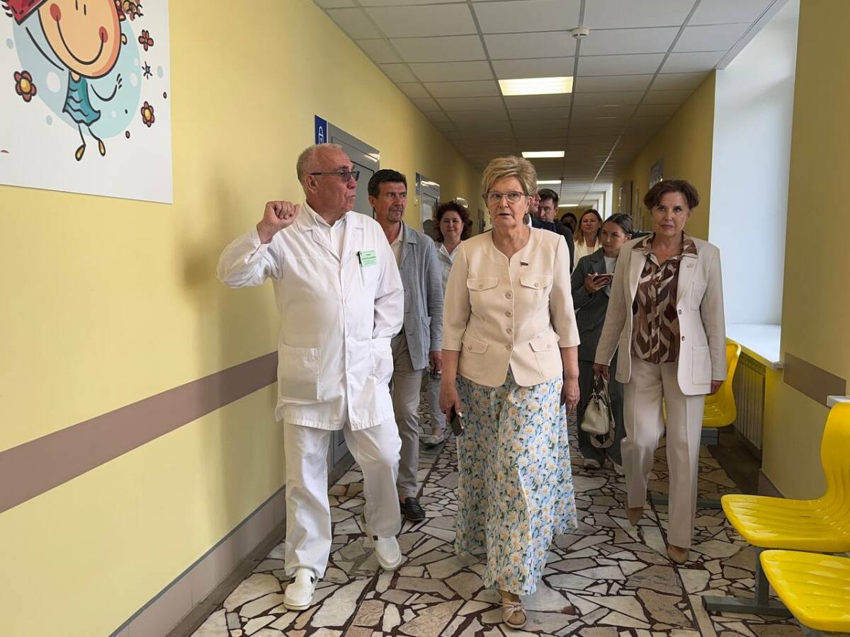 Татьяна Ларионова оценила результаты капитального ремонта пищеблока Центральной районной больницы. Она побывала в ЦРБ и детской поликлинике, пообщалась с малышами. Поликлинику отремонтировали ранее, а в этом году был завершен капитальный ремонт пищеблока с заменой оборудования за счет федерального и республиканского бюджетов.