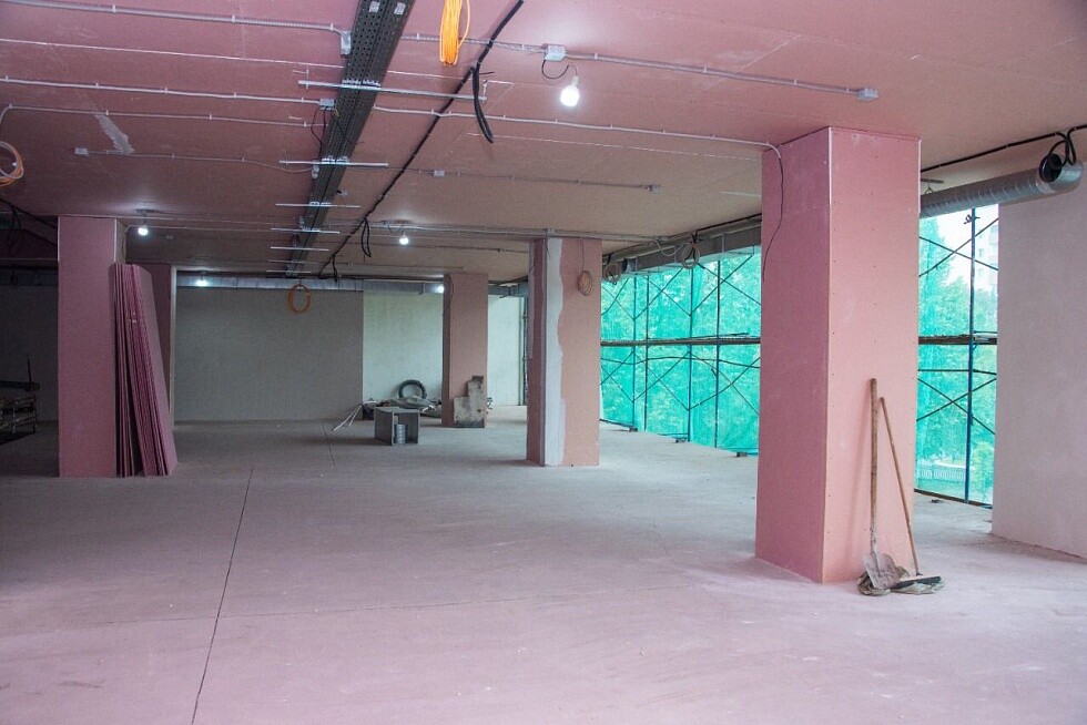 На сегодняшний день на объекте завершились все монолитные работы, а также отремонтирована кровля. На 95% выполнена замена инженерных систем коммуникаций, практически полностью завершены отделочные работы. Сейчас проводятся работы по внутренней отделке большого зала. В скором времени рабочие приступят к обновлению фасада — его украсят стеклянные витражи.