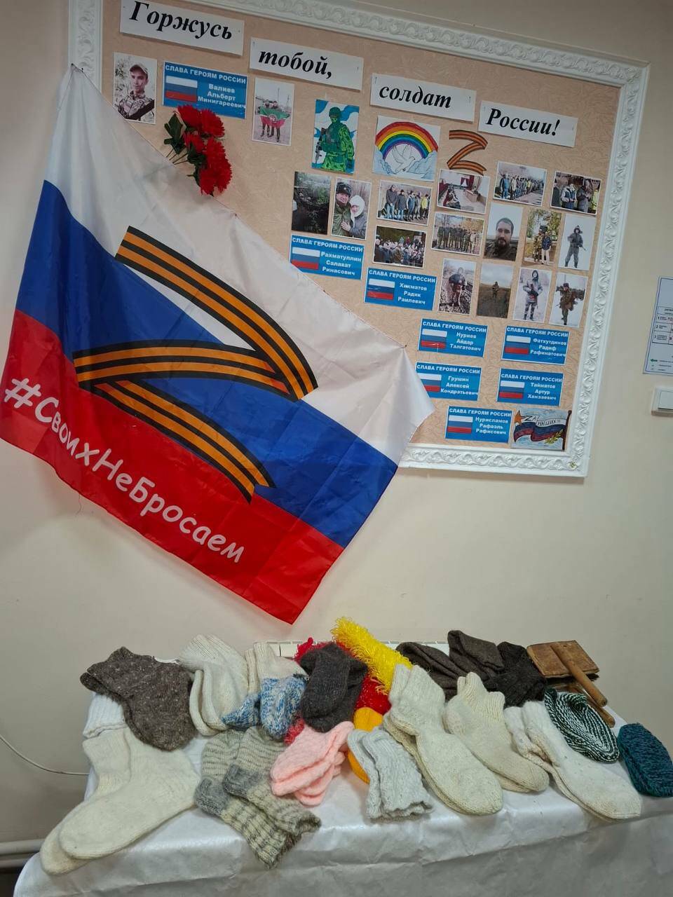Активистки поселения, вооружившись спицами и мотками пряжи, каждый день посвящают время благому делу — вязанию теплых носков. Для них это не просто рукоделие, а способ передать бойцам частичку домашнего уюта, тепла и поддержки. Вязание выполняется вручную, а некоторые мастерицы используют даже старинные деревянные прялки, благодаря чему каждая пара носков получается особенной, наполненной душевным теплом.