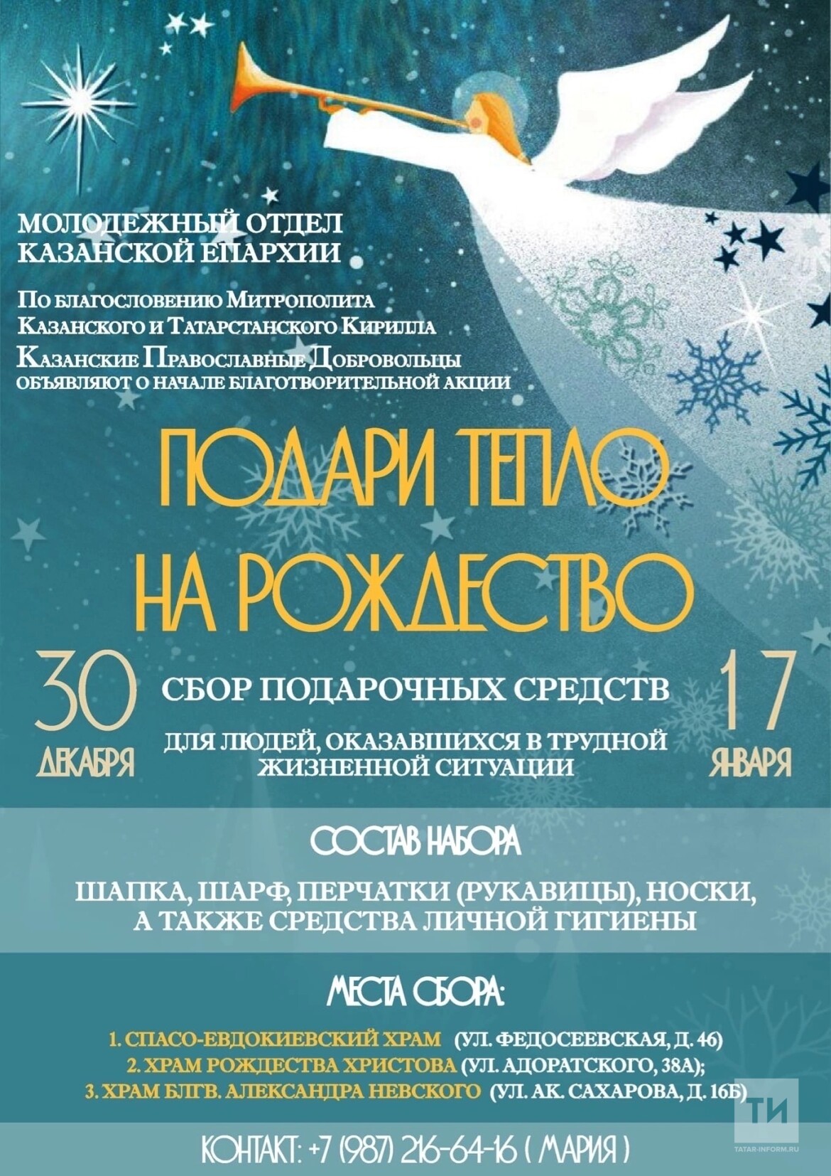 Молодёжный отдел Казанской епархии проводит акцию «Подари тепло на Рождество!». Волонтеры собирают наборы для тех, кто попал в трудную жизненную ситуацию. Акция проводится несколько лет подряд, и этот год не стал исключением.