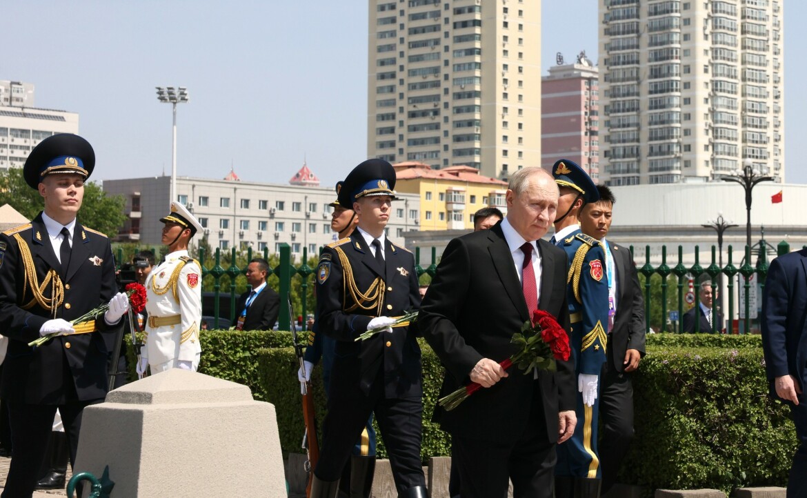 Во второй день визита Путин возложил цветы к памятнику освобождавшим Китай в годы Второй мировой советским воинам