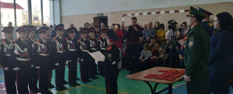 Ребята дали торжественную клятву с честью и достоинством нести звание кадета, строго выполнять устав кадетской школы, стремиться к глубокому усвоению знаний, проявлять заботу о слабых, быть готовым прийти на помощь в трудную минуту, быть надежным другом, быть достойным своего Отечества.