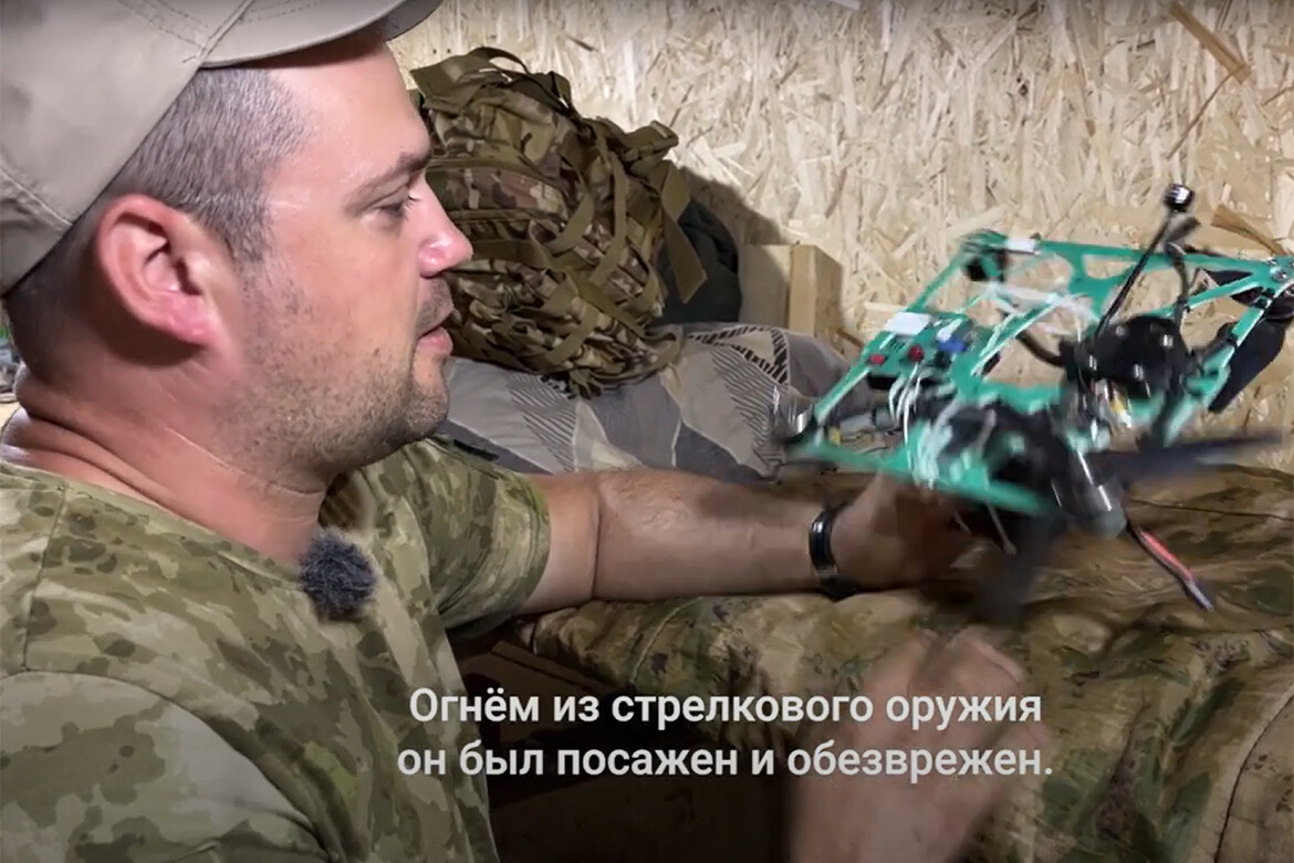 Уокер показал военкору трофей в виде сбитого украинского дрона-камикадзе, который пытался уничтожить наших бойцов на позициях. Дрон был посажен и обезврежен огнем из стрелкового оружия. Теперь он займет место в ряду трофеев батальона «Тимер».