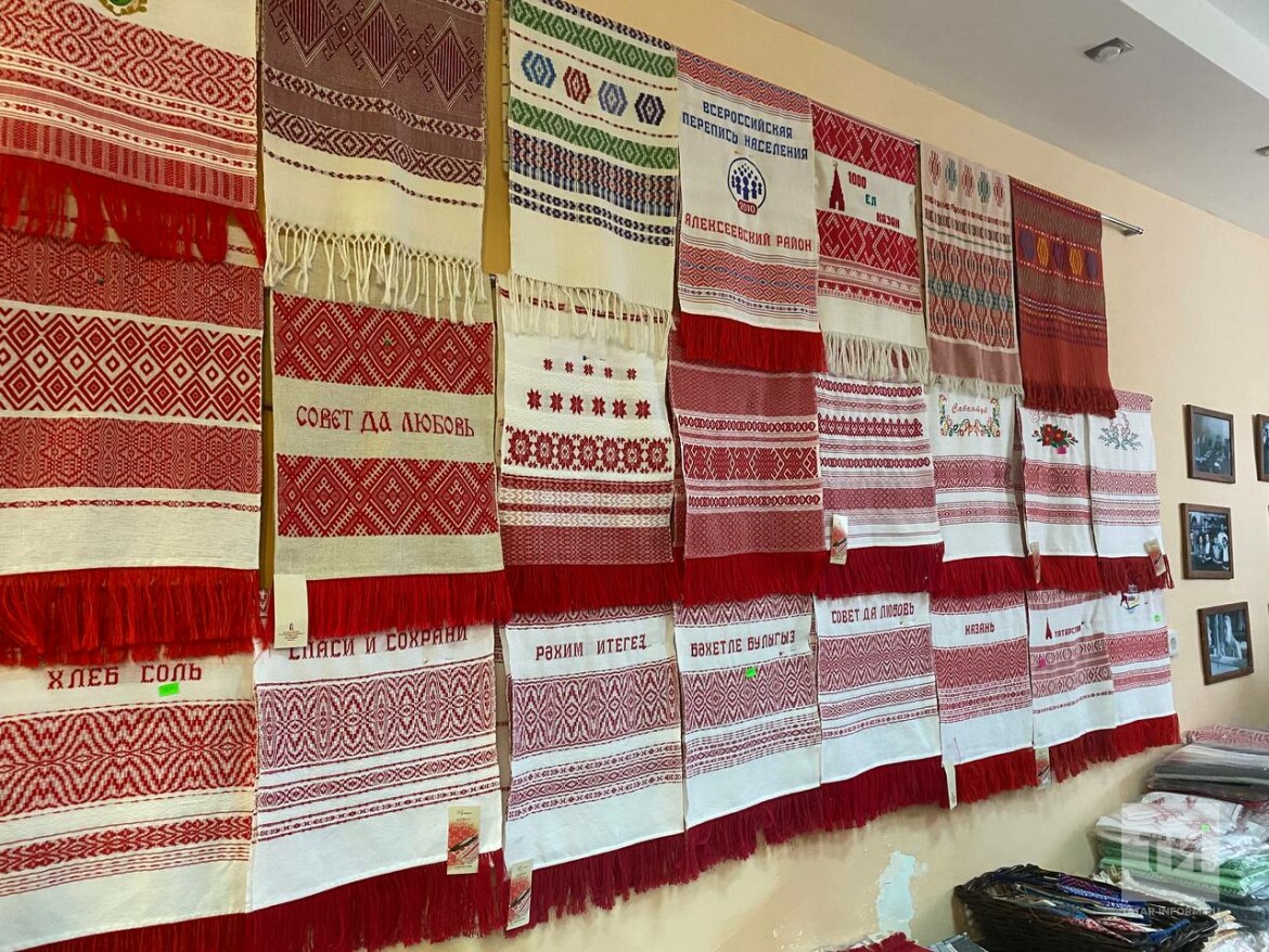 Следующей остановкой пресс-тура стала фабрика художественного ткачества. Ей насчитывается 95 лет – это самое древнее предприятие по ткацкому мастерству в Татарстане. Здесь трудятся хранительницы редкого сегодня, но очень ценного ремесла. Из простых нитей и тканей они создают непохожие друг на друга узоры полотен. Работают рукодельницы на старинных деревянных ручных станках 1927 года, создавая на них узорные скатерти, полотенца и платья с использованием двух видов пряжи — хлопок и лен.