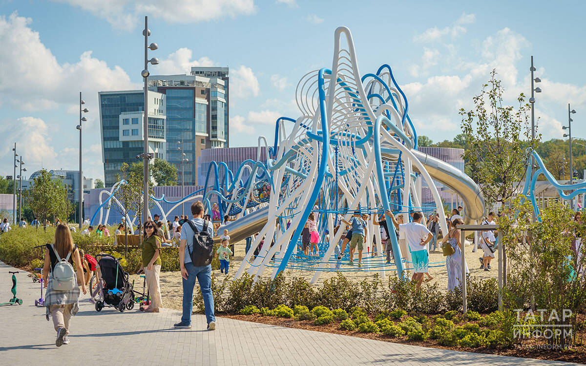Подарком жителям Казани ко Дню республики стал новый детский парк «Елмай» на берегу Казанки. Он появился между экстрим-парком «Урам» и Национальной библиотекой, на территории, пустовавшей с 2012 года. Объект стал самым большим детским парком России.