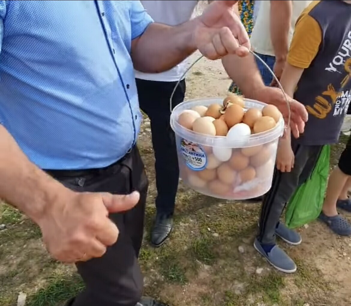 На видео мы наблюдаем большую группу жителей села, среди них есть и мужчины, и женщины, и старики, и дети. Дети держат в руках пакеты. Мужчина, идущий посередине толпы, держит шест, куда повязывают полотенца и платки. Под мелодии гармони толпа поет: «Если дадите пять яиц – ваша курица снесет еще сто!» Яйца складывают в ведерки. Кто-то из подписчиков оставил такой комментарий: «Мужчины в возрасте собирают яйца, а молодежь-то где?» На что Зульфат ответил: «Разделились на три группы, село у нас большое». Сабины сохранили традицию и показывают пример, как нужно приучать молодежь не забывать традиции и обычаи села!