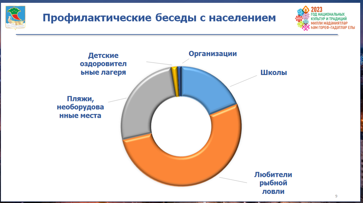 На пляжах и в необорудованных местах для купания инспекторы провели 3,5 тыс. бесед для 29 тыс. человек, в том числе с любителями рыбной ловли. Распространили 5 322 памятки и листовки.