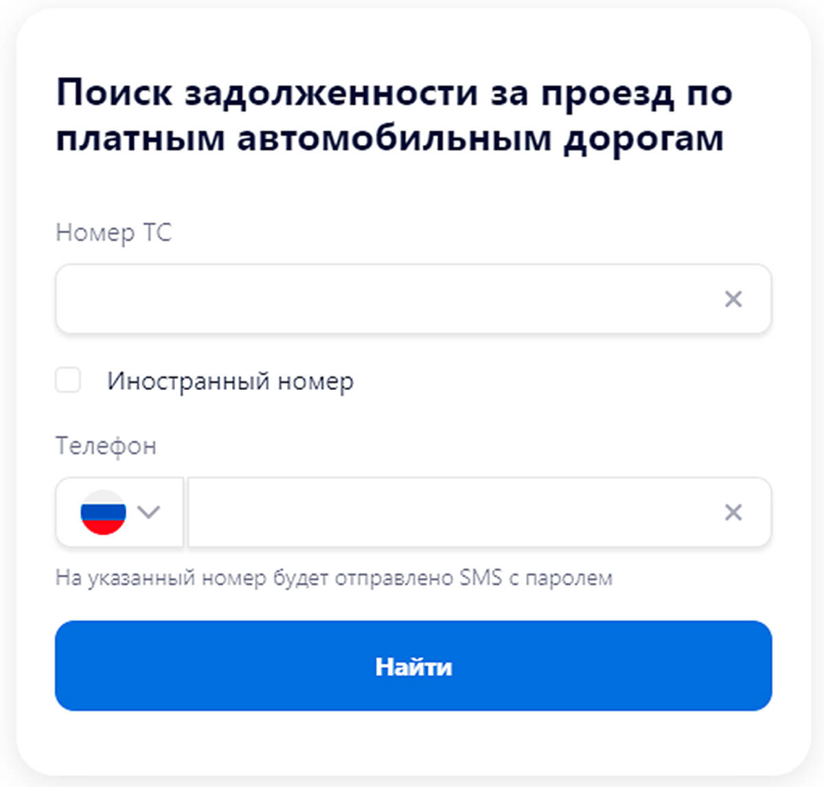 После клика на любой из них появится окно для введения госномера машины и номера мобильного телефона. После этого на указанный телефон придет SMS с паролем. Оплата производится с помощью СБП или банковской карты.