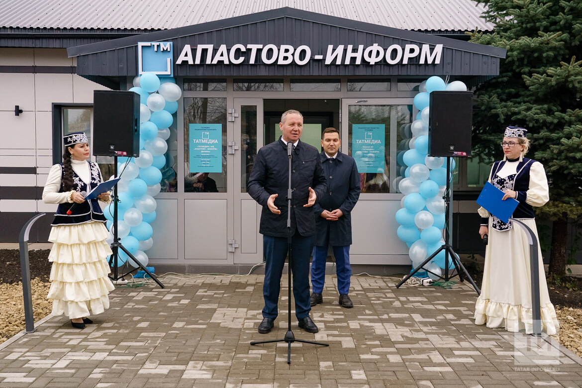 Здание «Апастово-информ» открылось в 1973 году и с тех пор не видело капитального ремонта. В его структуру входят два СМИ: журнал «Йолдыз» («Звезда»), который издается на русском и татарском языках, и телевидение «Апас хэбэрлэре», которое занимается производством новостных выпусков и музыкальных передач. Обновление здания филиала АО «Татмедиа» – это не только праздник для жителей района, но и тренд для всех СМИ республики. Таким мнением поделился руководитель Республиканского агентства по печати и массовым коммуникациям «Татмедиа» Айдар Салимгараев.