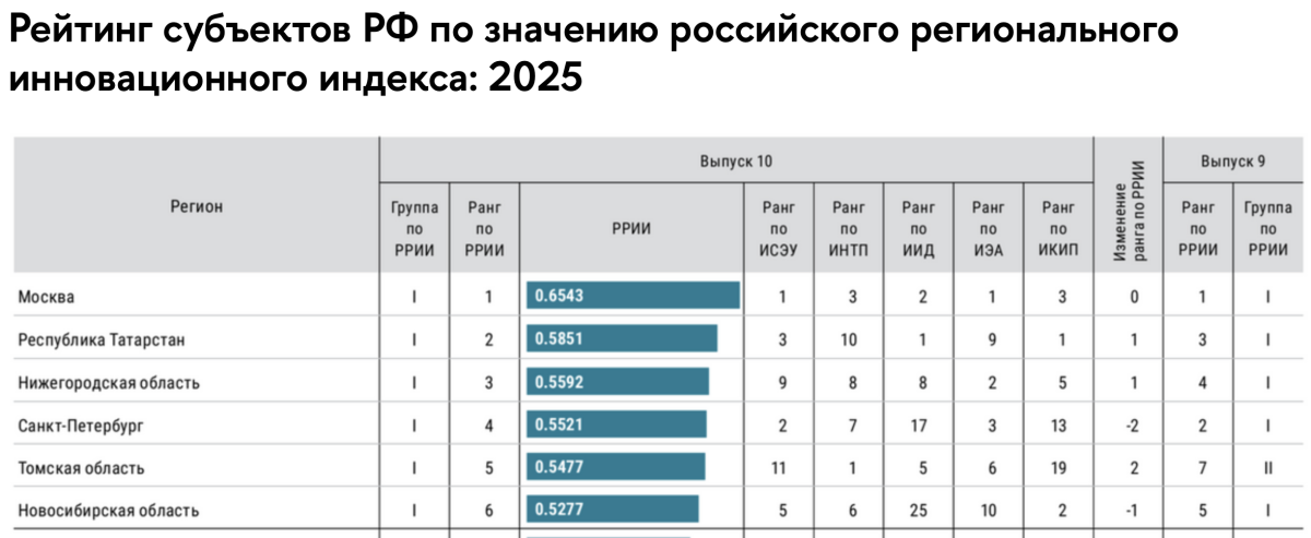 Татарстан вошел в тройку самых инновационных регионов России, заняв второе место – после Москвы, и перед Нижегородской областью – в десятом юбилейном рейтинге инновационного развития субъектов РФ. Его с 2012 года выпускает Институт статистических исследований и экономики знаний (ИСИЭЗ) НИУ ВШЭ.