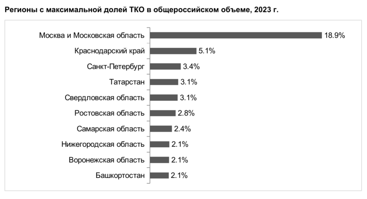А вот Татарстан, доля которого составляет 3,1% (так же, как у Свердловской области, и чуть меньше, чем у Санкт-Петербурга), сгенерировал 366,4 тыс. килограммов на человека в год. Что, как нетрудно заметить, выше среднероссийского показателя. В ПФО сопоставимые объемы (364 кг) были зафиксированы только в Самарской области (при ее доле в 2,4%).
