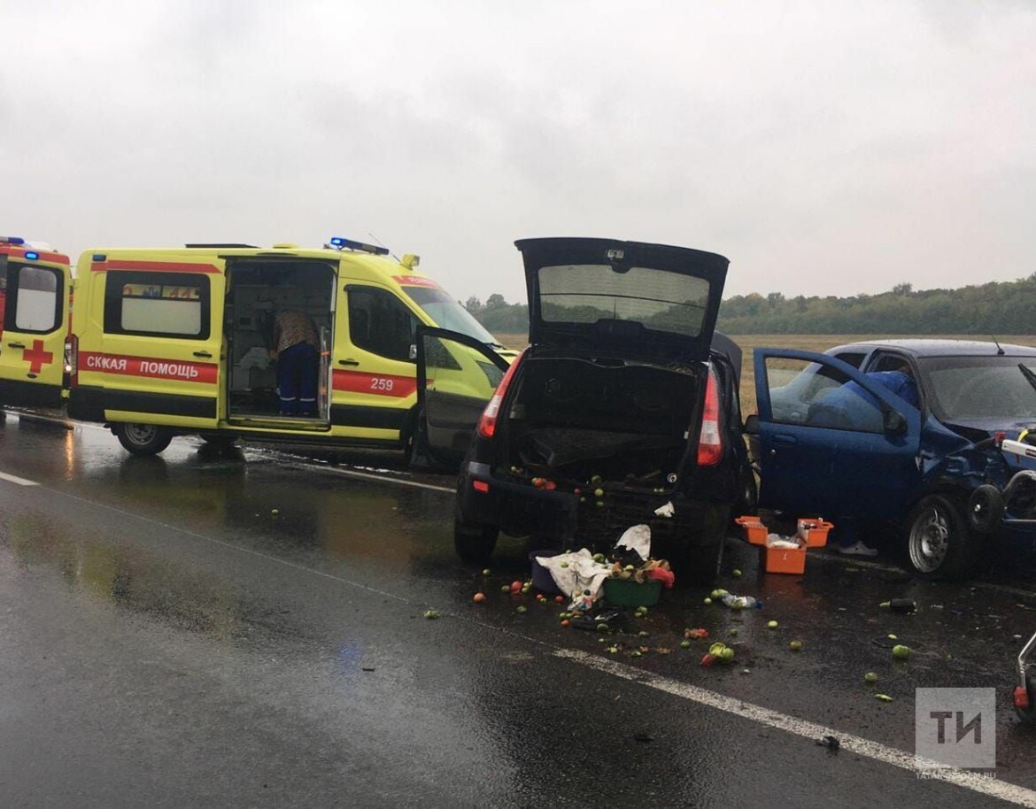 Трое пассажиров пострадали в лобовом столкновении двух легковушек в Татарстане