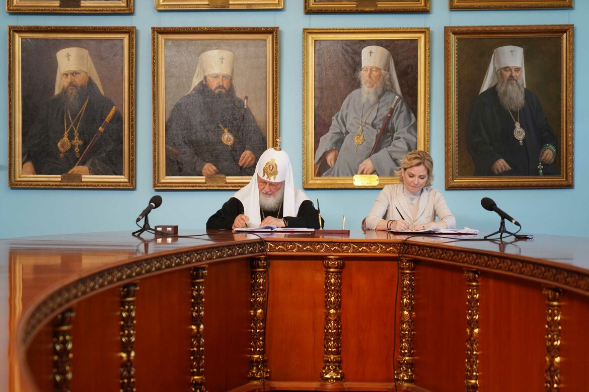 Соответствующий договор сегодня подписали предстоятель Русской православной церкви и министр культуры РФ Ольга Любимова. Церемония состоялась в здании Санкт-Петербургской митрополии, расположенном в Александро-Невской лавре.