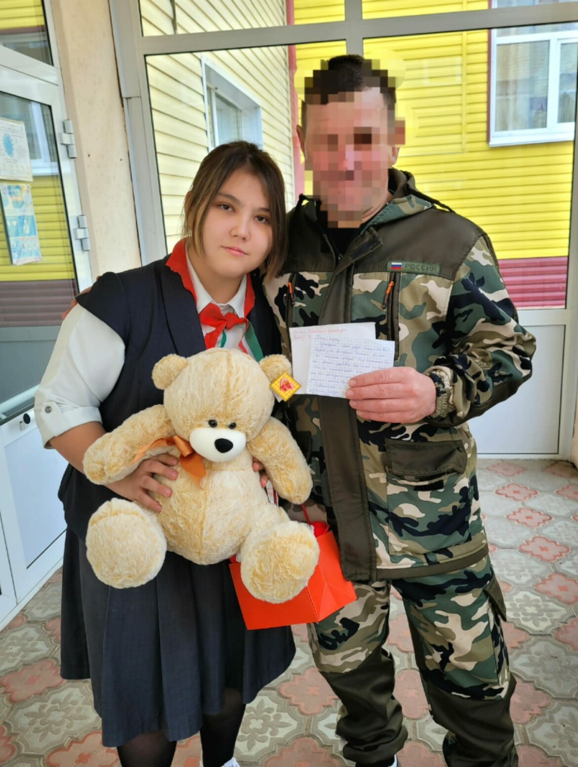 Александра была приятно удивлена, что боец навестил ее, да еще и приехал с подарком. «Такие теплые моменты трогают до глубины души! Пусть все наши бойцы, вставшие на защиту Родины, вернутся к своим близким в здравии!» — говорит школьница.