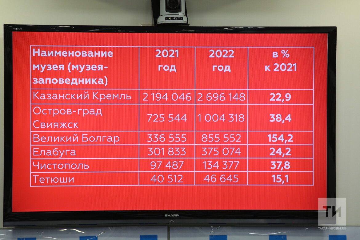 За восемь месяцев Казанский Кремль посетило более 2,6 млн человек, остров-град Свияжск – свыше 1 млн, Великий Болгар – 855,5 тыс., Елабугу – 375 тыс., Чистополь – 134,3 тыс. и Тетюши – 46,6 тыс. туристов.