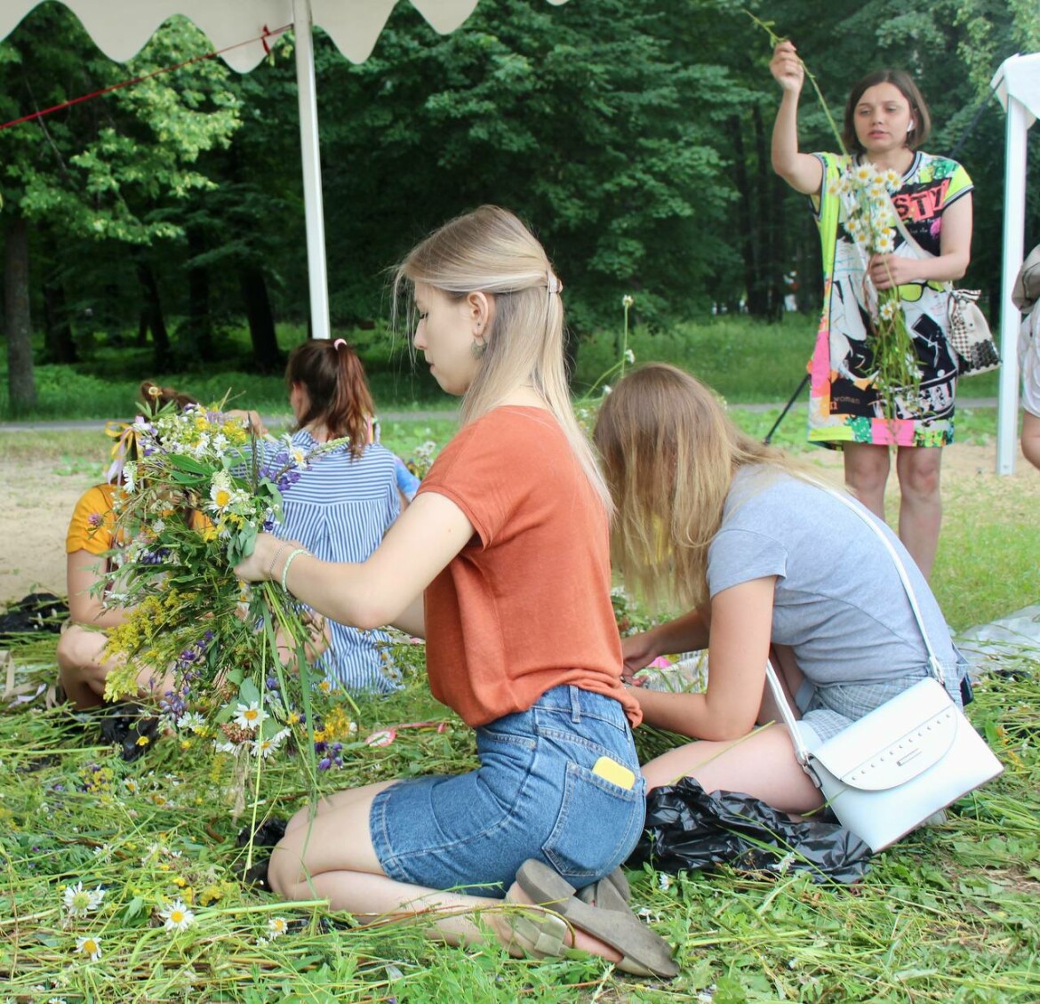В парке «Авангард» работал городок с мастер-классами по древнерусскому письму, плетению браслетов, венков и изготовлению кукол-оберегов. В мастерской корреспонденту «Татар-информа» рассказали, что венки можно изготовить разными способами. Мастерицы предлагали гостям праздника плести головные украшения упрощенным вариантом — на ободке с леской, а также по часовой стрелке и при использовании каркаса-веточки, который обвивают цветами. Девушки плели венки из ромашек, люпинов, самых разных полевых трав, привезенных из живописных мест Зеленодольского района.