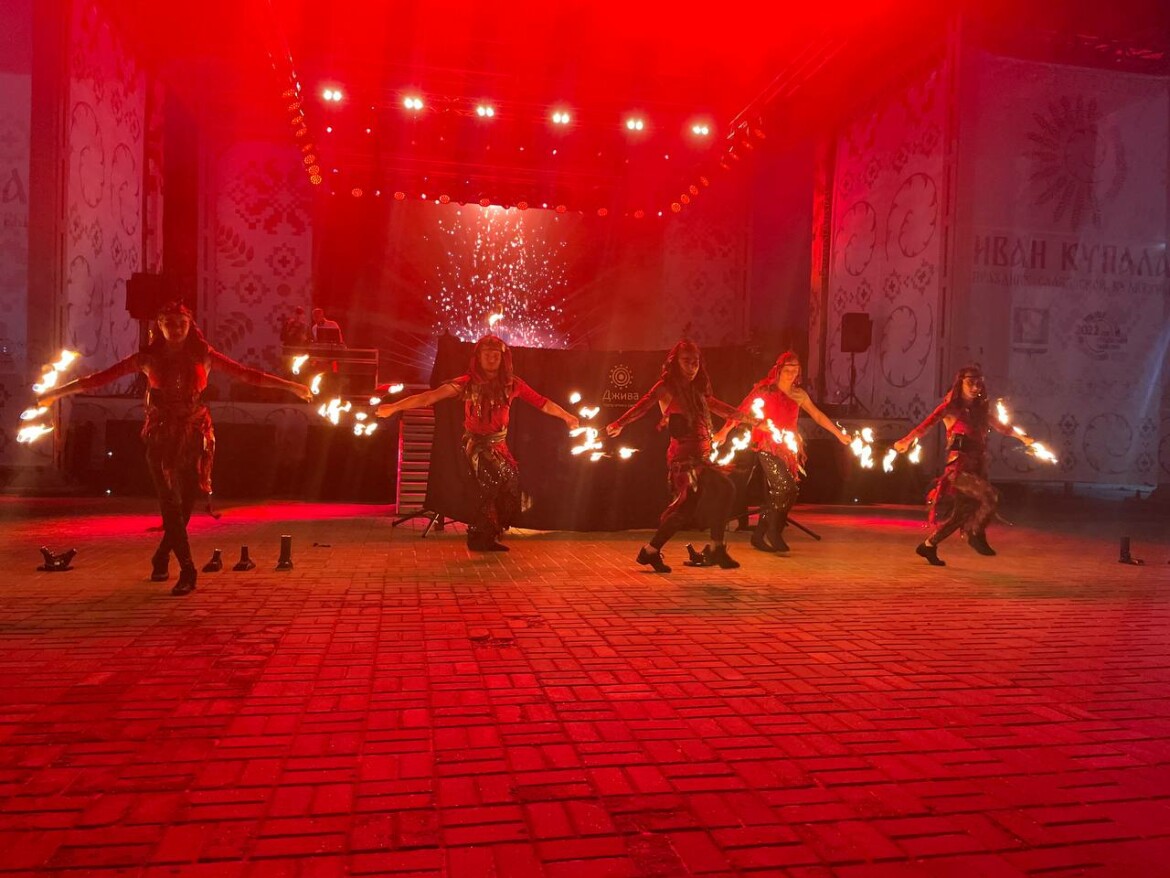В финале праздника для гостей состоялось огненное шоу и имитация традиционного купальского костра