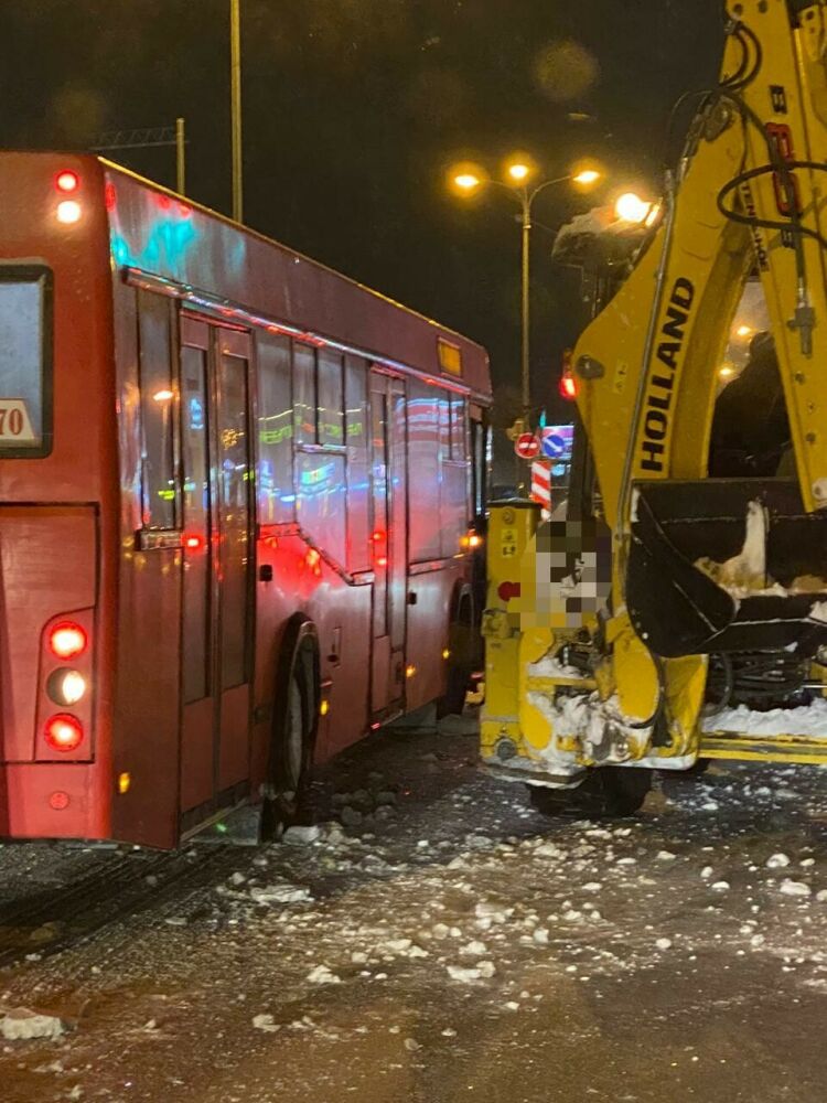 У автобуса оторвало дверь после столкновения с экскаватором в Казани