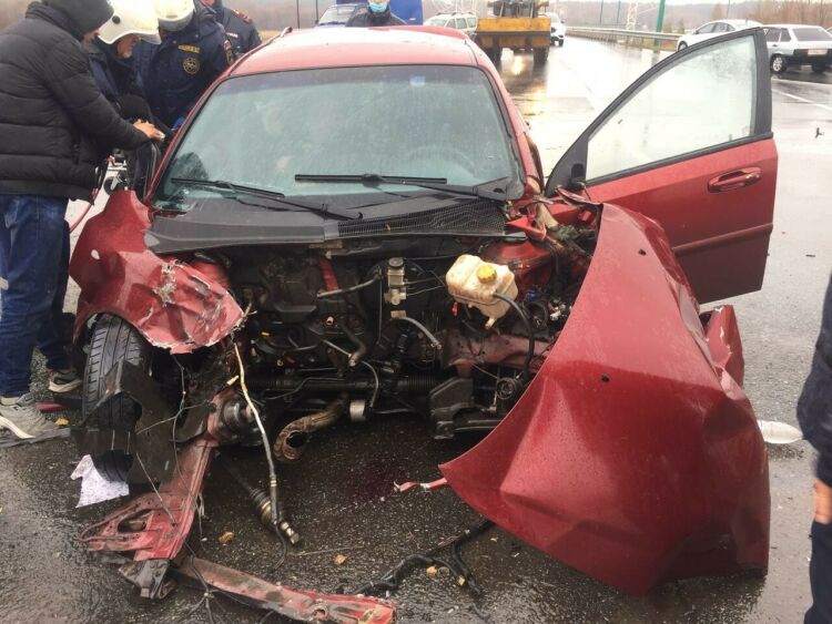 У легковушки вырвало двигатель после ДТП с двумя грузовиками в Буинске