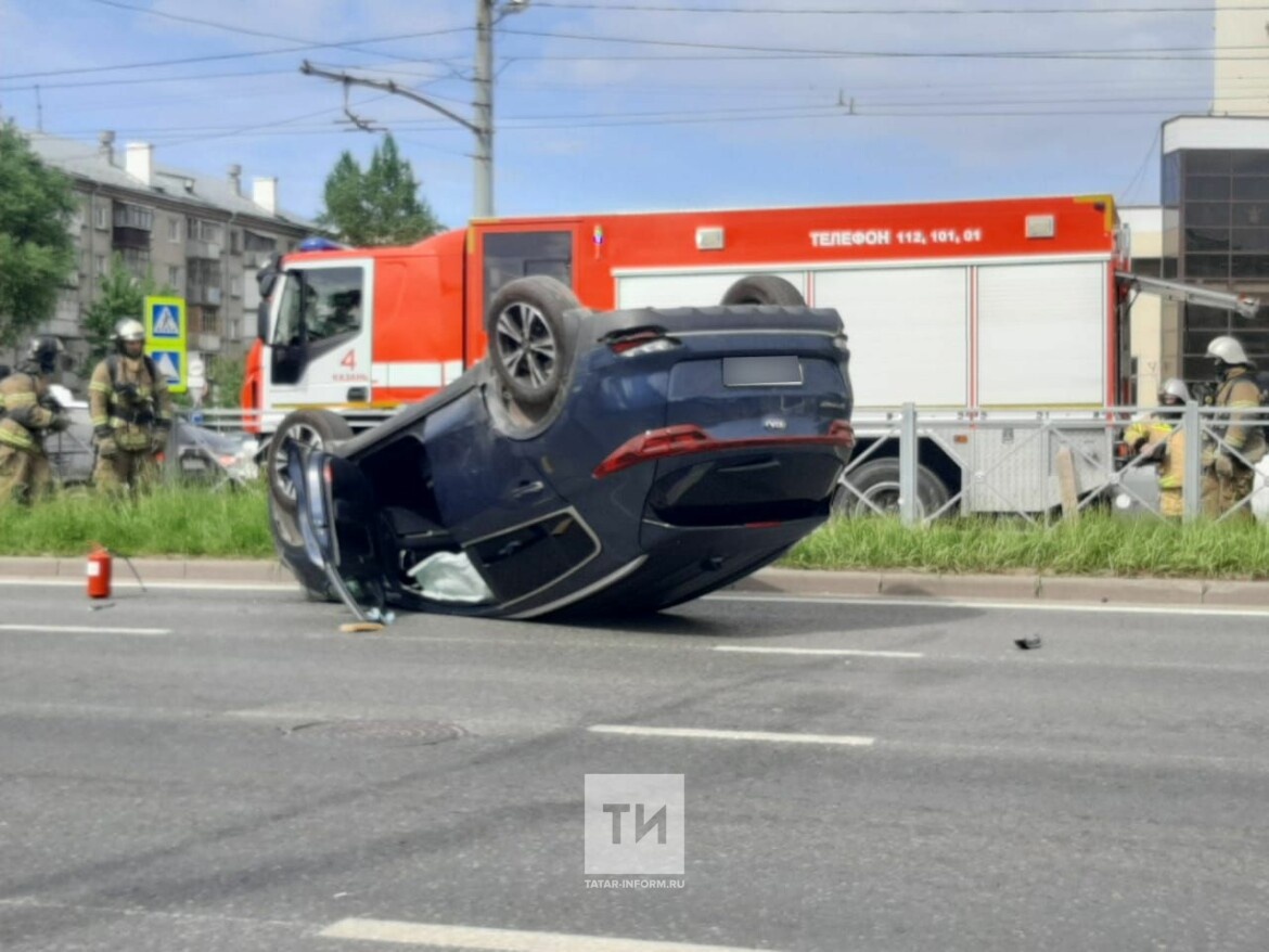 Сегодня в Казани, около ТЦ «Ягодная слобода» столкнулись Kia Sportage и Toyota Camry, в результате чего кроссовер перевернулся на крышу. Об этом ИА «Татар-информ» сообщили очевидцы аварии.