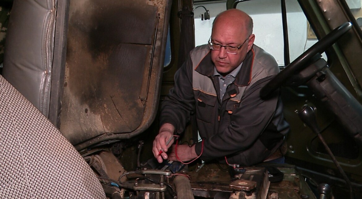 «Данный автомобиль полностью проверили по технической части: все ходовые части, подшипники и ходовую часть, коробку — всё проверили. Поменяли масла. Поменяли колодки тормозные, полностью обслуживание сделали. И сейчас будем делать скамейки внутри, чтобы ребятам было куда сесть. Полностью удобства создаем», — рассказал автослесарь Назил Салихов.