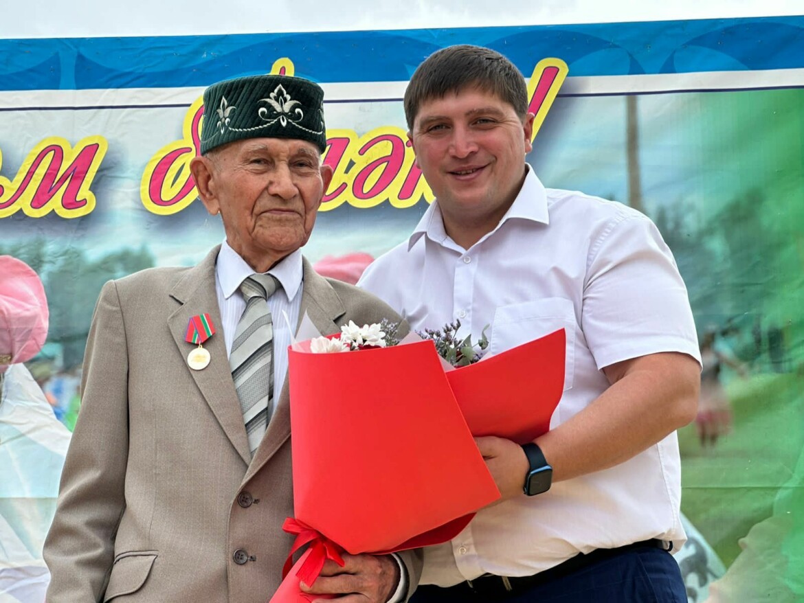 Сегодня в селе Бизяки Менделеевского района отметили Сабантуй. Почетными гостями праздника стали глава района Радмир Беляев и участник Великой Отечественной войны Зайнак Аглиев.