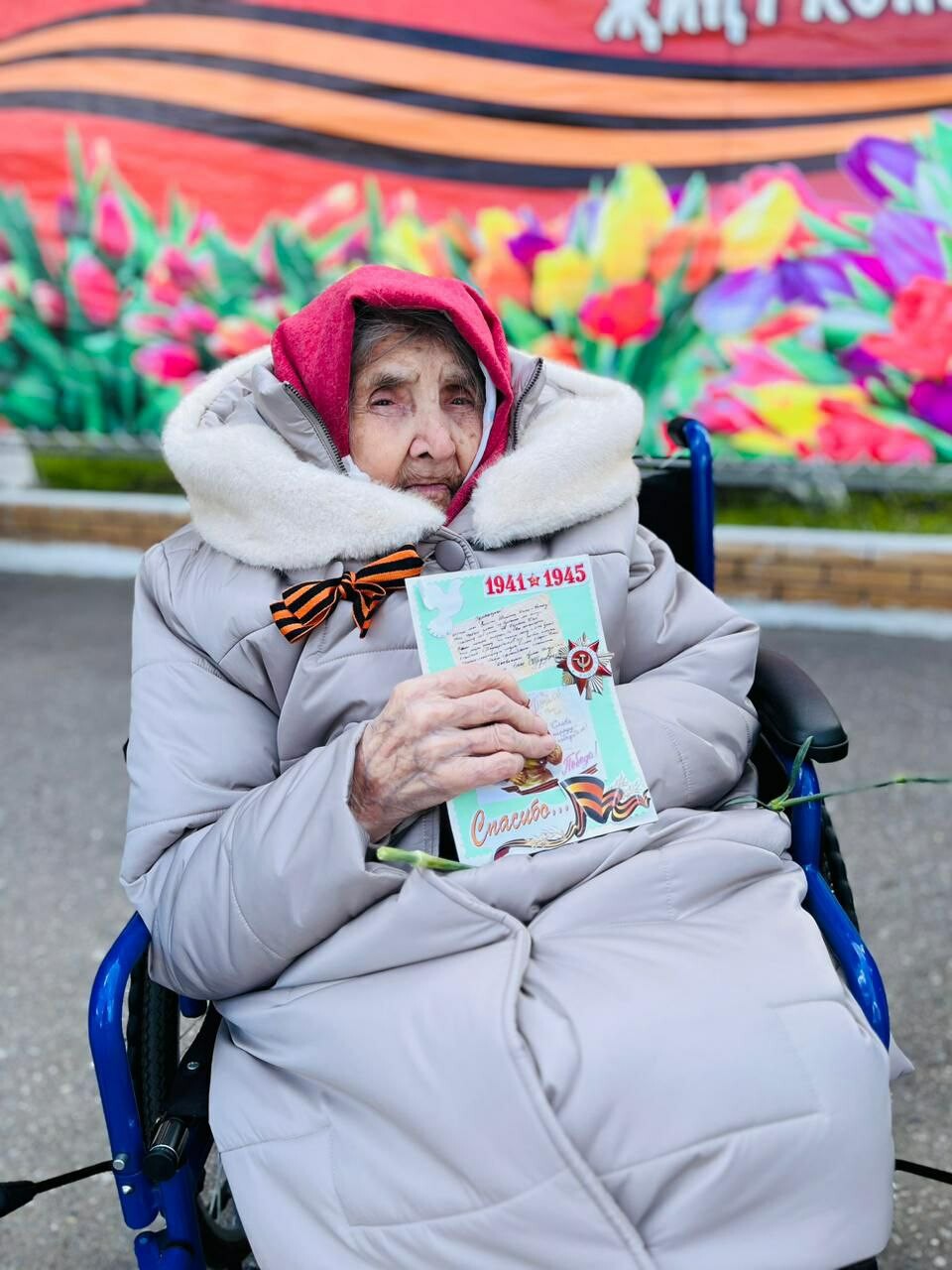 В этом году участники пробега не только проехали по городу колонной из 57 автомобилей под звуки песен Победы, но и навестили труженицу тыла и вдову участника Великой Отечественной войны Дарью Михайловну Сорокину, которой совсем недавно исполнилось сто лет.
