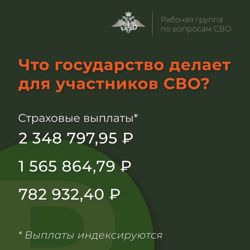 Страховые выплаты осуществляются акционерным обществом «Согаз». По всем интересующим вопросам необходимо обратиться к командиру своей воинской части или военкому по месту жительства, а также можно позвонить в «Согаз» по номеру 8 800 333 0 888.