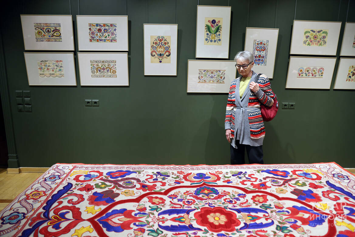Экспонаты заняли всего один зал на третьем этаже галереи и представлены в основном панно из кожаной мозаики, главной особенностью которых является казанский шов — знаменитая техника ручного декора кожи, получившая статус нематериального культурного наследия Татарстана. На создание одного такого панно уходит около года, поэтому подобных произведений художницы немного. Большинство из них сразу пополняют фонды Музея ИЗО Татарстана.