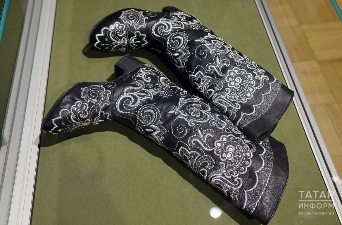 В числе экспонатов выставки также татарские сапоги, тоже декорированные в технике кожаной мозаики казанским швом, сумка, выставочный образец «Голубой шали» из крепдешина к одноименному спектаклю театра Камала — его создали по эскизам Кузьминых и Гарбузовой. Дополняют выставку эскизы татарских орнаментов театрального художника (1919–1964) Петра Сперанского.