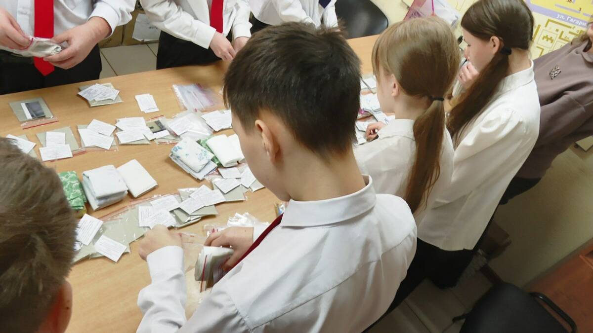 Волонтеры группы «Добрые сердца» продолжают работу по сбору гуманитарной помощи и вовлечению жителей Нижнекамска в поддержку участников специальной военной операции. Очередной мастер-класс прошел в пункте приема помощи на улице Химиков, 72б, где сухой душ впервые изготавливали ученики 6 «А» класса коррекционной школы № 18.