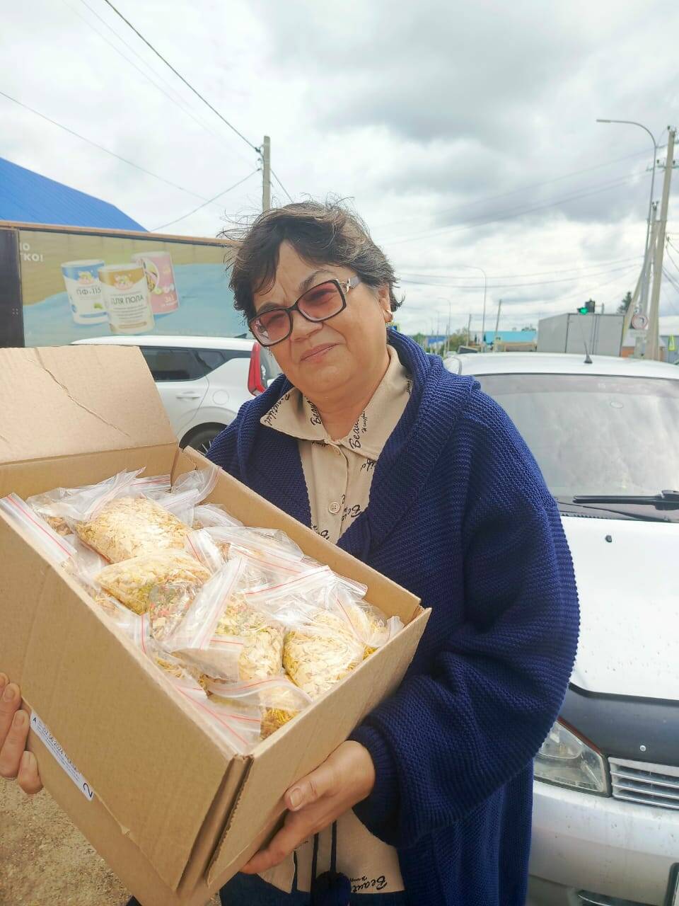 «Готовят не только суп с лапшой. Например, в Сабинском, Арском районах — даже борщ, высушив капусту, столовую свеклу, чеснок и другие овощи. За ними я попробовала приготовить сухую кашу из вареной гречки. Уже осваиваю. В зимние морозы планируем отправлять и каши. Сын попросил делать большие порции. Сейчас я пакую в пакеты побольше», — рассказала она.